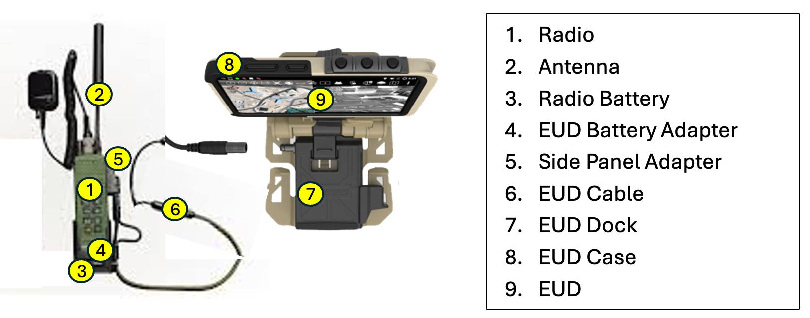 We have one digital helper: the End User Device (EUD), a Samsung Galaxy S20 running ATAK, a digital map. Although this works as a stand-alone device, it is most useful when networked- allowing me to see friendly locations, send messages, and even call in artillery or medical evacuation. In theory, it can be connected through our radios. In practice, this connection requires a nine-part kludge of radios, adaptors, cables, cases, and mounts — all strapped to a Soldier’s chest, dragged through mud and rain.
